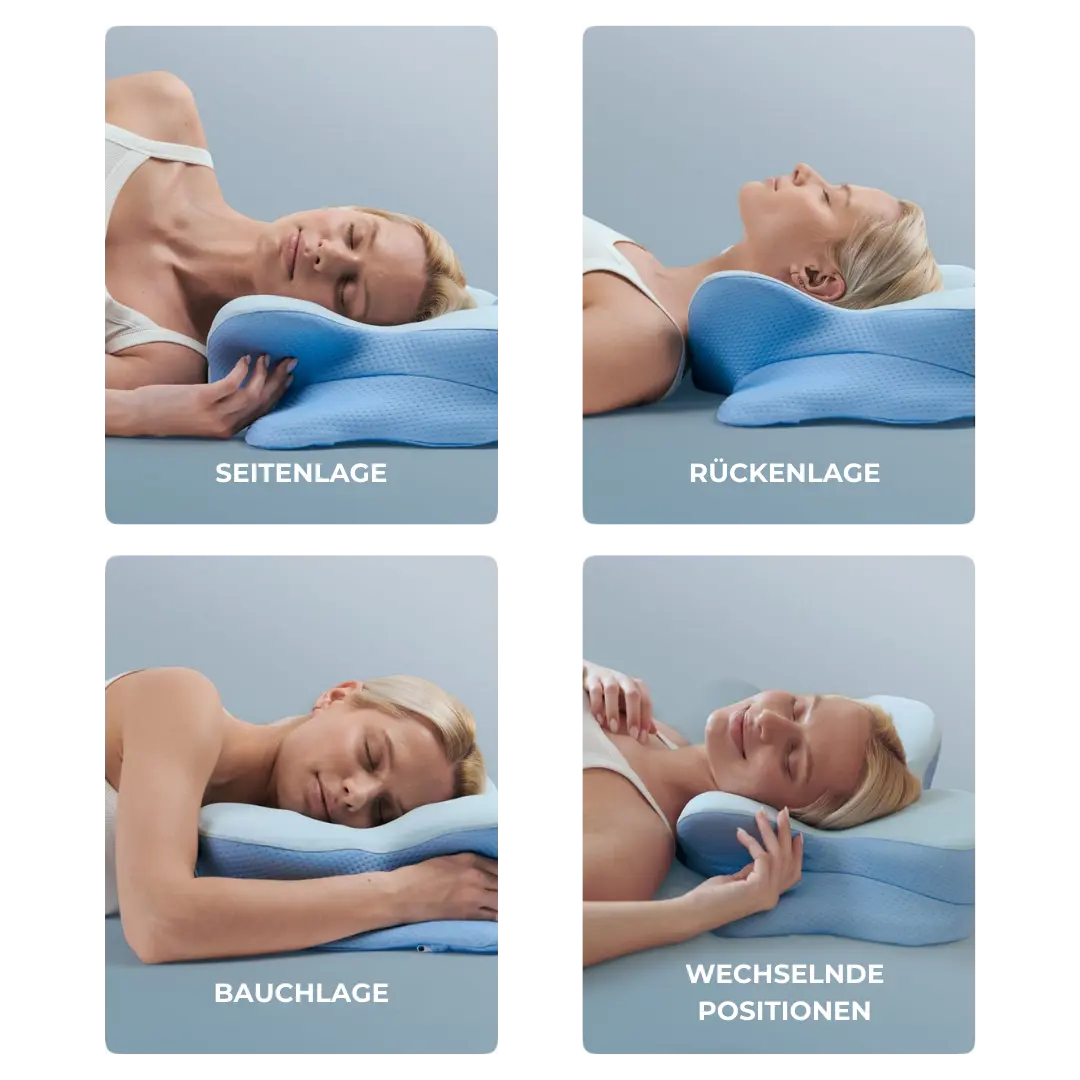 Es beginnt damit, dass Ihr altes Kissen Ihre Wirbelsäule die ganze Nacht lang aus ihrer Ausrichtung zwingt. Während Ihr Kopf einsinkt und sich bewegt, bauen sich Muskelverspannungen vom Hals abwärts bis in den unteren Rücken auf.